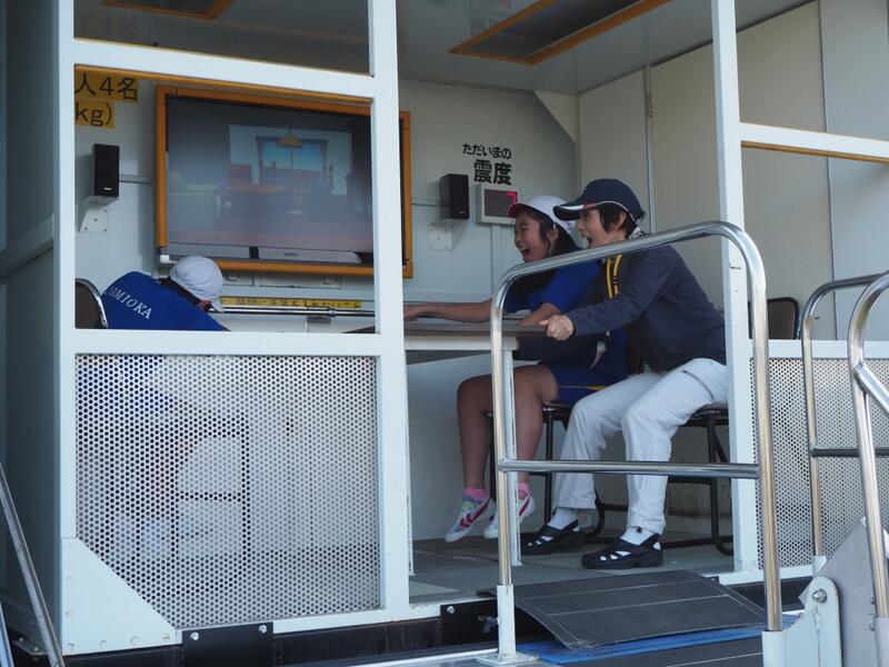 地震の揺れを体験できる起震車に乗り込み、大地震を疑似体験しました。