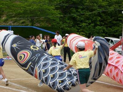 こいのぼりダービー(幼小中でこいのぼりをつなぎました)