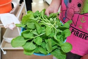 3人で分担して、小松菜を切ったり炒めたり味付けをしたりしました。