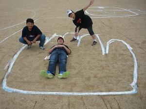 6年生が、社会の授業で校庭に奈良の大仏を描きました。