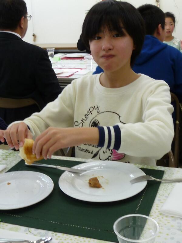 メニューは、田村学校給食センターさんに協力してもらい、「グリーンサラダ、コーンスープ、クロワッサン、鶏の照り焼き、添え物、ケーキ、紅茶」でした!