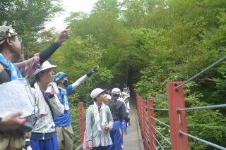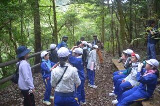 途中、森の案内人の方の様々な説明を熱心に聞きながら、時には歩きにくい場所を気を付けて歩きながら、全員が最後まで歩ききりました。さすが高学年、体力・気力があります!