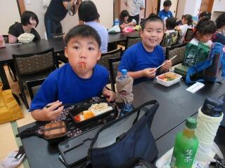 まずはおいしいお弁当タイム!!暑いことが予想されたので、事前に大広間を借りて置いたおかげで、涼しい室内でおいしくいただきました。