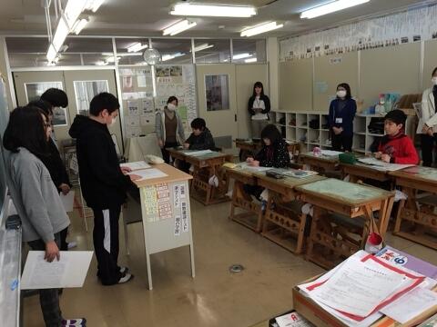 今日は中学校の3年生の先生方に6年生の授業の様子を見ていただきました。