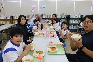 運動会の練習の後は、学年ごとに一緒に給食をいただきました。