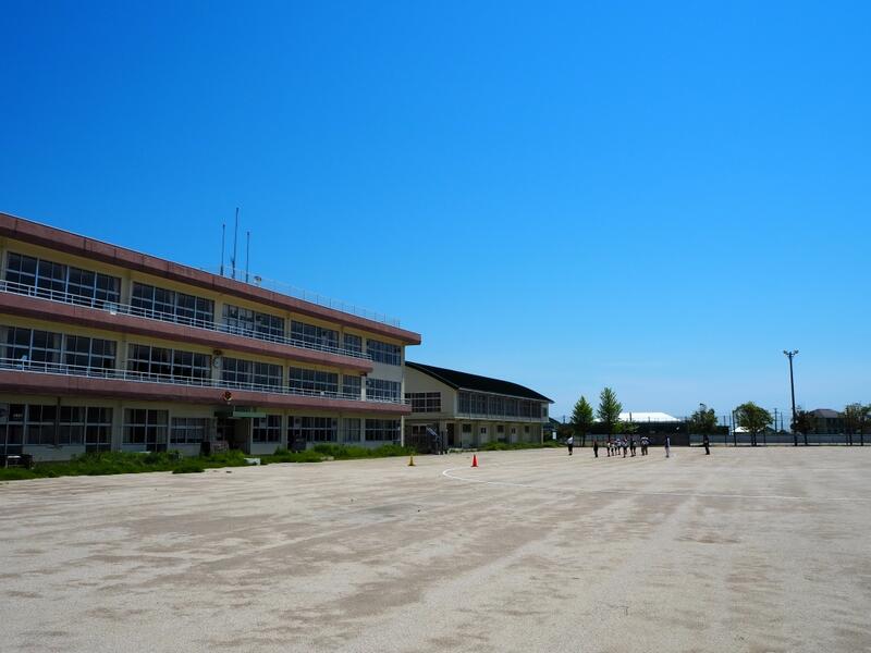 今は使われていない一小の校舎が子どもたちを見守る中、