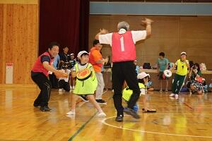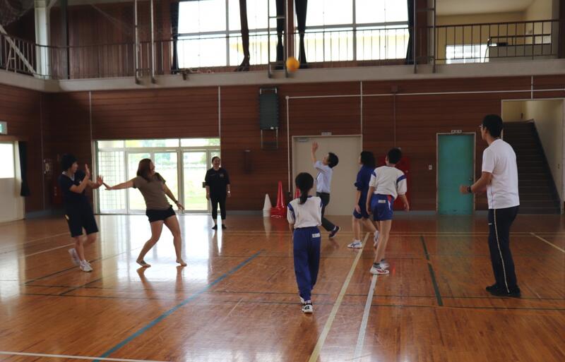 除草作業のあとには体育館でみなさんと一緒にドッヂビーをして遊びました。