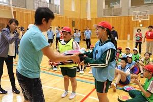 贈呈式の後には、いただいたものを持ってさっそく体育館へ。