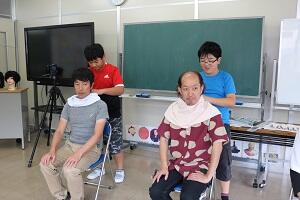 タオルの巻き方、はさみの持ち方、バリカンの使い方などを練習します。