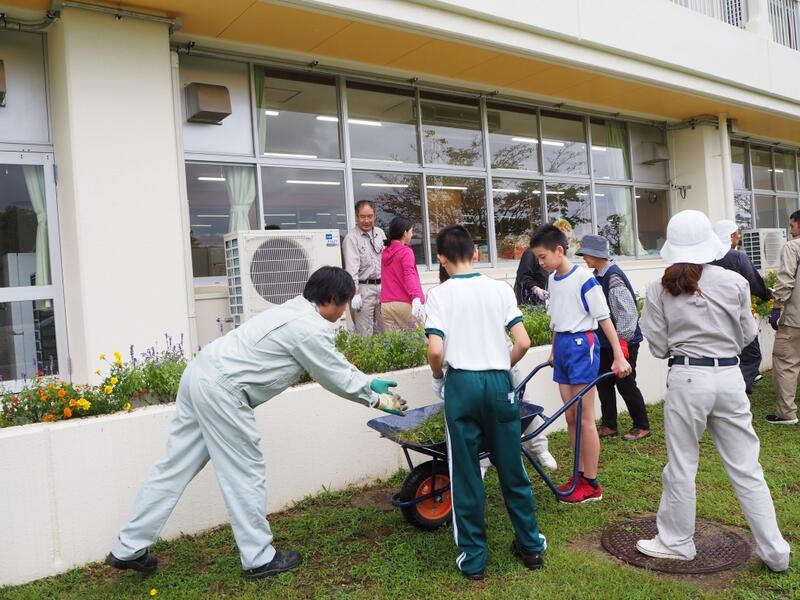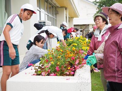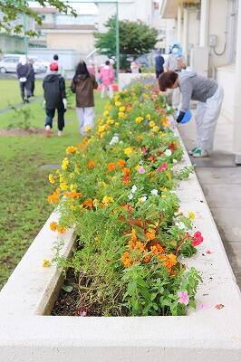みなさんの協力により花壇が再びかわいらしい花畑のようになりました。