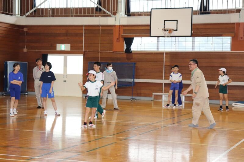子どもたちがもっと元気になるようにと体育の授業に一緒に参加してくれました。
