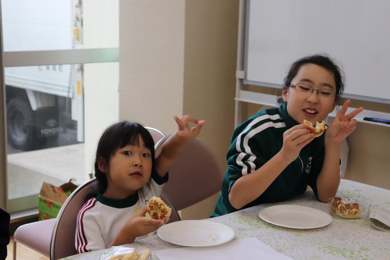 ホットプレートやフライパンを使って焼きます。今回は、一人一人が先生の分まで