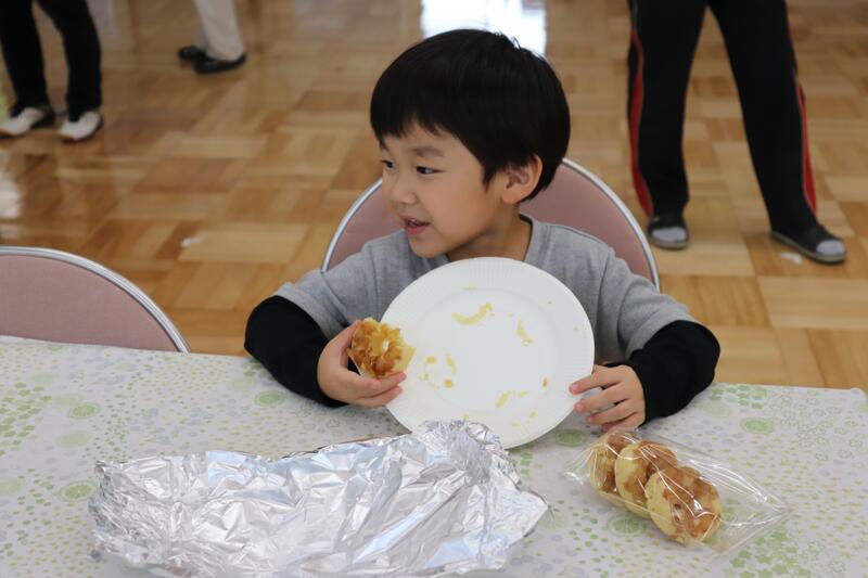 お母さんと一緒に食べることができて、みんなうれしそうですね。