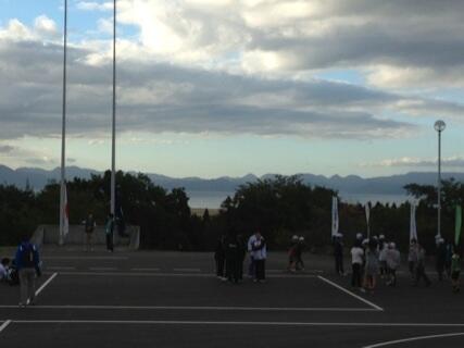おはようございます。いよいよ最終日です。部屋の掃除も済ませ、朝の集い一番のりです。太陽と猪苗代湖が5年生を迎えてくれました。