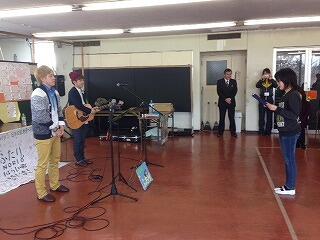 保護者の紹介で、6年生の卒業と各学年の進級を祝して、ミニライブが開かれました。
