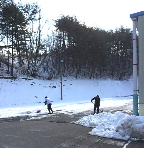 朝のうちに先生方で雪かきしたので、道路の雪はありません。路面はそれほど冷たくなく、雪かきもしやすくなってきました。少しずつですが、春の気配がしています。