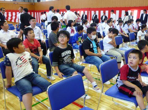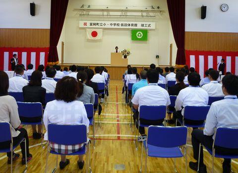 今日はご来賓を招待して、体育館で竣工式を行いました。