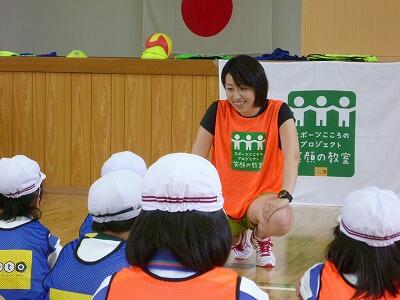 今日,「スポーツこころのプロジェクト スポーツ笑顔の教室」が開かれ,元シンクロナイズドスイミング選手の松村亜矢子さんが夢先生としていらっしゃいました。