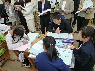 11月6日(金)に公開授業を行いました。5年生の算数『面積の求め方を考えよう』を公開し、子どもたちは大勢の方々に少々緊張気味でしたが台形の面積を自分が考えた方法で解き、その考えを周りの友達にしっかり伝えることができていました。