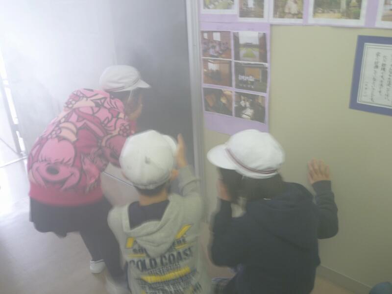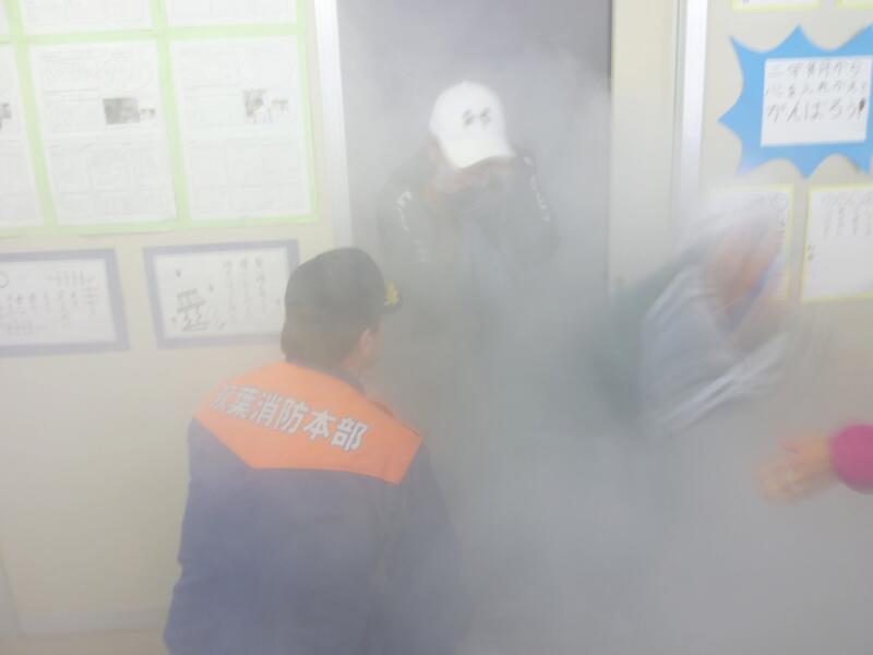 教室が煙でいっぱいになっていると、視界が悪くしゃがまないと何も見えない状態のところを歩き、煙の怖さを実感することができました。