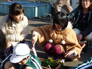 11月30日(月)に毎年ご支援してくださっている、三春の日本赤十字社の方々からパンジーの苗や土、肥料などをいただきました。また、説明を受けながら一緒に定植を行いました。