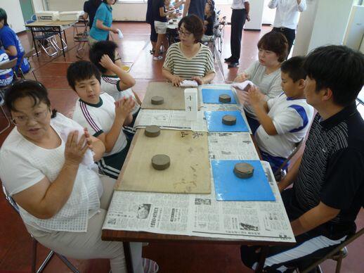 【親子体験教室】森林の大切さについて話をいただいた後、親子で大堀相馬焼の器を作りました。