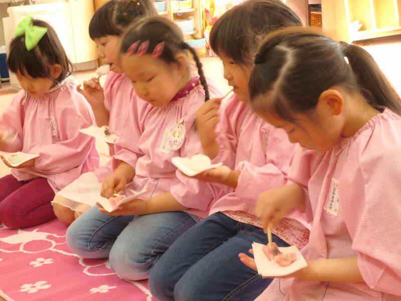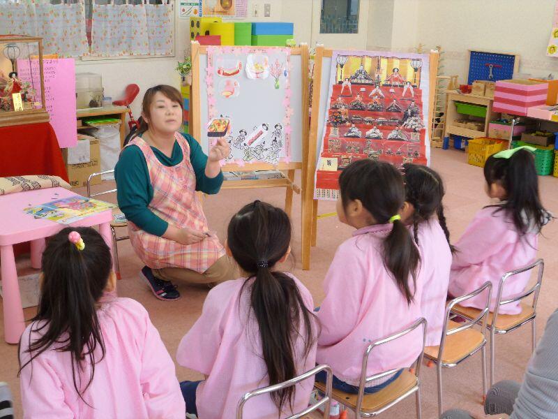 今日は,3月3日の「ひな祭りの日」です。富岡幼稚園では,ひな祭りの会が開かれました。ひな祭りの由来を先生から教えていただいたり,茶道体験をしたり・・・楽しい時間を過ごしました。