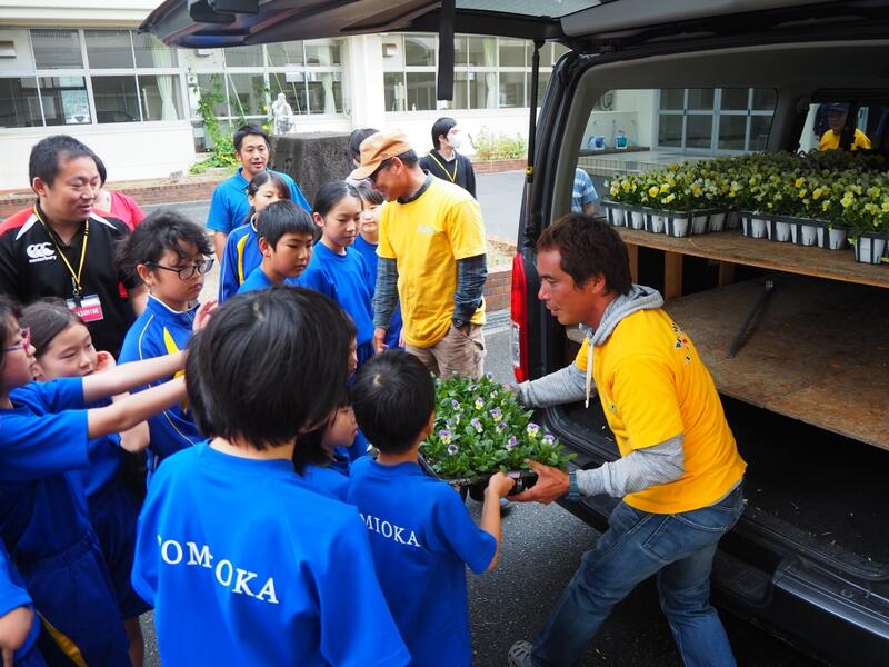 はるばる数百キロも車を走らせ、双葉郡の多くの学校に苗を届けてくださっています。