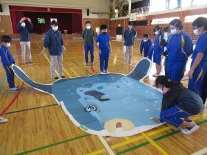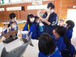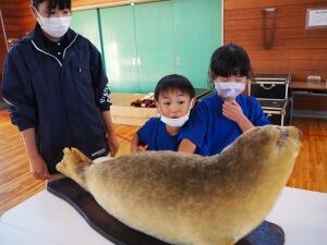 富岡は、海の近くにあるものの、あまり海の生物に触れる機会がありません。今日は、実際に生き物に触れることができた貴重な体験となりました。また、アクアマリンの職員の方による、はく製の観察・説明会も行いました。