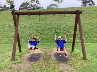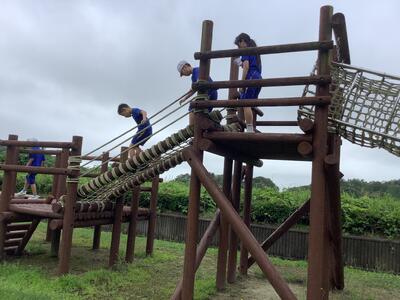 到着後、葛尾小学校さんが来るまでの間、アスレチックで体を動かしました。