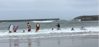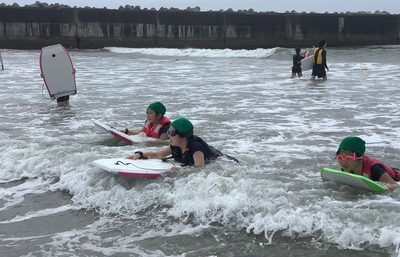 昼食後、四倉の海岸でボディーボード体験をしました。