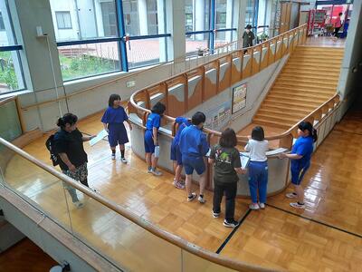 班で協力して、施設内にあるヒントカードを探し出しました。
