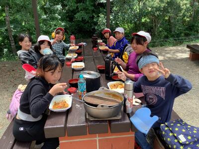 普段、なかなかお家で料理をする経験のない子も、マッチを擦ったことのない子も、友達と協力してそれぞれの役割をしっかりと果たし、おいしいカレーライスを作ることができました。