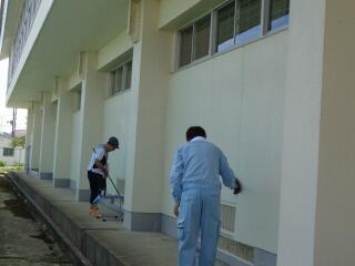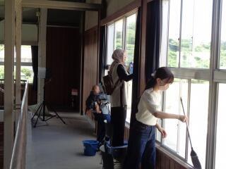 体育館の窓やドア、プールの更衣室などを中心に、普段子どもたちでは掃除ができていない場所を行っていただきました。
