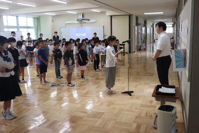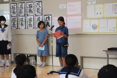 校長先生のお話の後、小中それぞれの代表児童生徒から1学期の反省と夏休みの抱負の発表がありました。