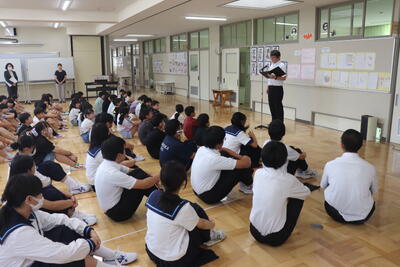 夏休みが終わり、小中学校合同で第2学期の始業式を行いました。