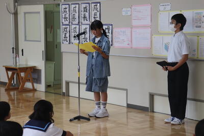 その後、代表の児童が夏休みの反省と2学期の抱負について発表しました。