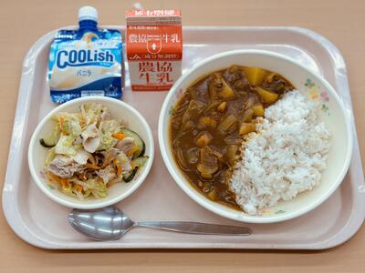 元気の出るカレーと栄養たっぷりのサラダ、ひんやりとしたアイスで暑い2学期もがんばりましょう。