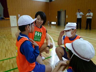 ゲームを終え,松村先生からチームワークの大切さや,学習や遊び・スポーツなどどんな時にもどうしたらうまくいくか一人ひとり考えることが大事だというお話をいただきました。