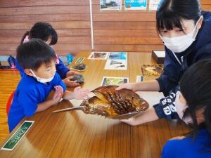 富岡は、海の近くにあるものの、あまり海の生物に触れる機会がありません。今日は、実際に生き物に触れることができた貴重な体験となりました。また、アクアマリンの職員の方による、はく製の観察・説明会も行いました。