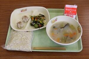 給食開始(三春校) 投稿日時 : 2021/08/25 富岡第一・第二小学校 2学期が始まって3日目。今日から給食が始まりました。 今日の献立は、鶏白湯、シュウマイ、海藻サラダ、牛乳です。 1学期同様、全員同じ方向を向いて間隔を空けて座り、黙って食事をする黙食を継続しています。 休み時間は、体育館で活動するときには全ての窓を開け、子ども同士が接触しないように 気をつけながら遊ぶようにしています。 2年生が飼育しているカブトムシも、距離をとって黙食をしているようですね。 {{options.likeCount}} {{options.likeCount}}