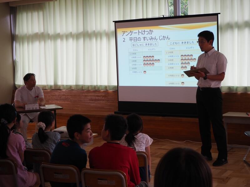 その後、各学級代表児童が1学期の反省と夏休みの目標を発表しました。