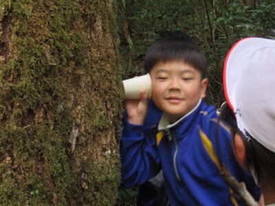 4年生の理科「すずしくなると」の学習とあわせ、森林環境学習を行いました。