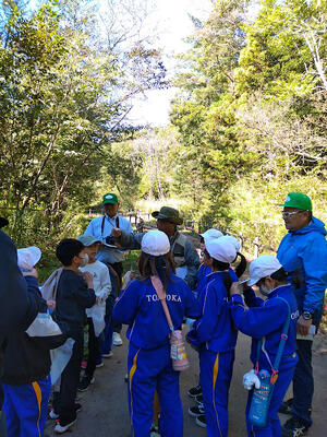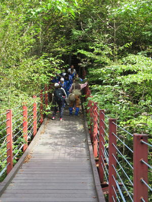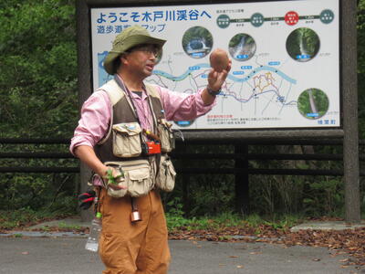楢葉町にある木戸川渓谷遊歩道では、森の案内人の皆さんにガイドをしていただき、自然散策を行いました。