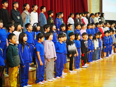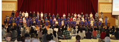 それぞれの学年の発表の後、全校で『ビリーブ』と『校歌』の合唱をしました。