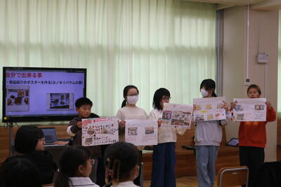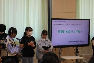 子どもたちはこれまで、総合的な学習の時間や体験学習などを通して「富岡町を盛り上げるためには何が必要か」について調べ考えてきました。