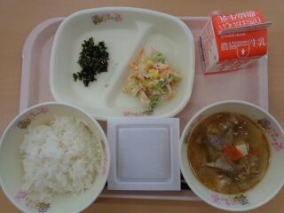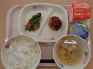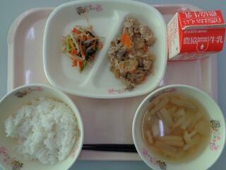 ごはん 牛乳 大根の味噌汁 豚肉の生姜炒め 三色和え