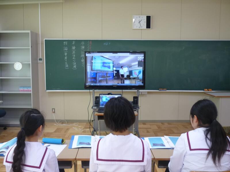 「作者はどんな思いだったのかな」の問いかけに、教室にいる三春校の生徒も富岡校の生徒も「んー?」と必死に考えています。互いにいろいろな考えを共有しながら深い学びになるよう教科担任も必死です。今後も、効果的なものを目指して取り組んでいきます。