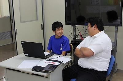 ①3年生が、ニュージーランドの学校とSkypeでつないだ授業を行いました。これは、9月に学校にいらしたニュージーランドの先生との縁です。「俺と趣味が同じだ!」「わたしの英語、通じたよ!」の声。生の会話はとても新鮮でした。