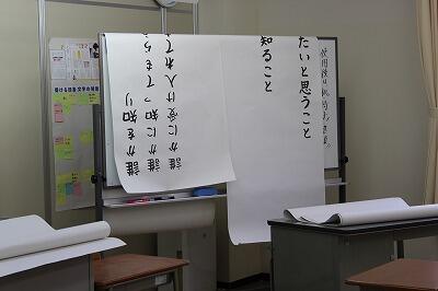 最後に展示準備です。全員で仕上げた「詩」、そして総合的な学習の時間のまとめを展示できるよう進めている様子です。準備期間はあと2日となりました。本番が楽しみです。当日、ぜひお出でいただき、生徒の学習の成果をご覧ください。